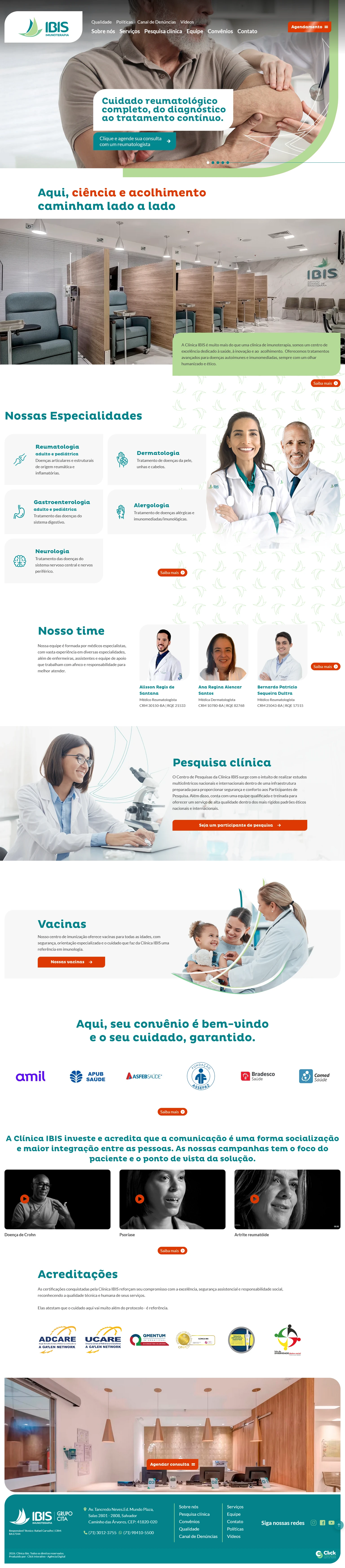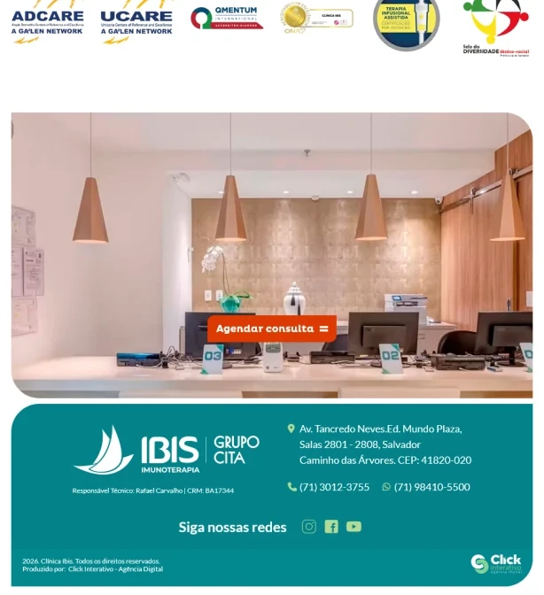 Na Click Interativo, criamos soluções digitais que fortalecem a presença online de instituições de saúde, colocando a experiência do paciente em primeiro lugar. Tivemos o orgulho de desenvolver o site da Clínica Ibis, um centro de excelência em imunoterapia, tratamentos clínicos e serviços médicos humanizados em Salvador.
