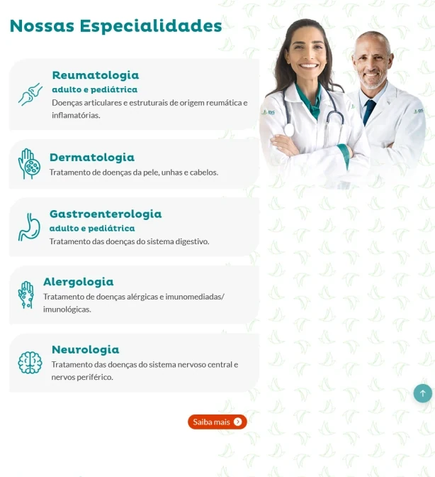 O site foi estruturado para apresentar de forma clara e organizada as especialidades médicas, o centro de infusão, vacinação, equipe profissional, pesquisa clínica e os serviços oferecidos pela clínica, proporcionando uma navegação intuitiva para pacientes, familiares e visitantes.