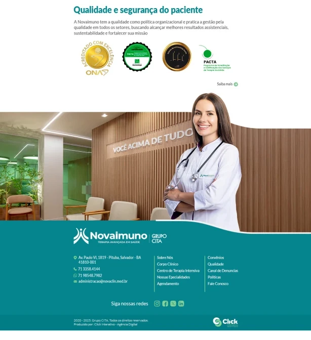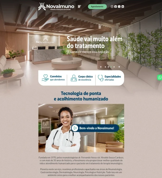 Na era digital, a presença online de uma clínica no tratamento de doenças autoimunes e imunomediadas, não é apenas um diferencial, mas uma necessidade. A Click Interativo teve a honra de colaborar com a Novaimuno, para desenvolver um website que refletisse a excelência e a inovação desta clínica renomada.